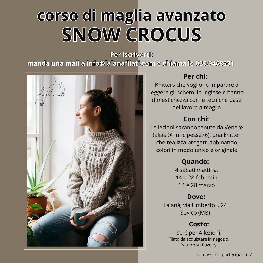 - pattern da acquistare da Ravelry, al seguente link: https://www.ravelry.com/patterns/library/snow-crocus-2 (se necessario, potremo acquistarlo noi per te)